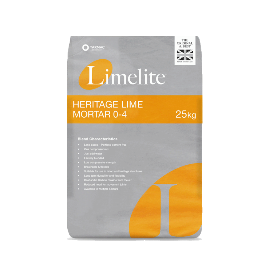 Limelite Heritage Lime Mortar is a lime based cement free mortar used for brick laying, block laying and stone masonry work for internal and external applications. Limelite Heritage Lime Mortar is available in 0-4mm and 0-2mm aggregate sizes making it suitable for a range of construction and pointing applications in brick and stone.